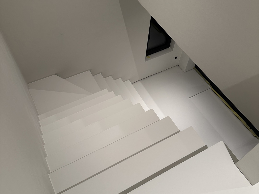 Een goed voorbeeld is het project bij de familie De Clerck. Daar werd een volledige woning afgewerkt met PU-systemen – inclusief trappen en douches. "We gebruikten PUR Deco Color in combinatie met PUR Top M en PUR Top M Plus voor een slijtvaste, UV-bestendige afwerking zonder afdrukgevoeligheid," vertelt Falat.