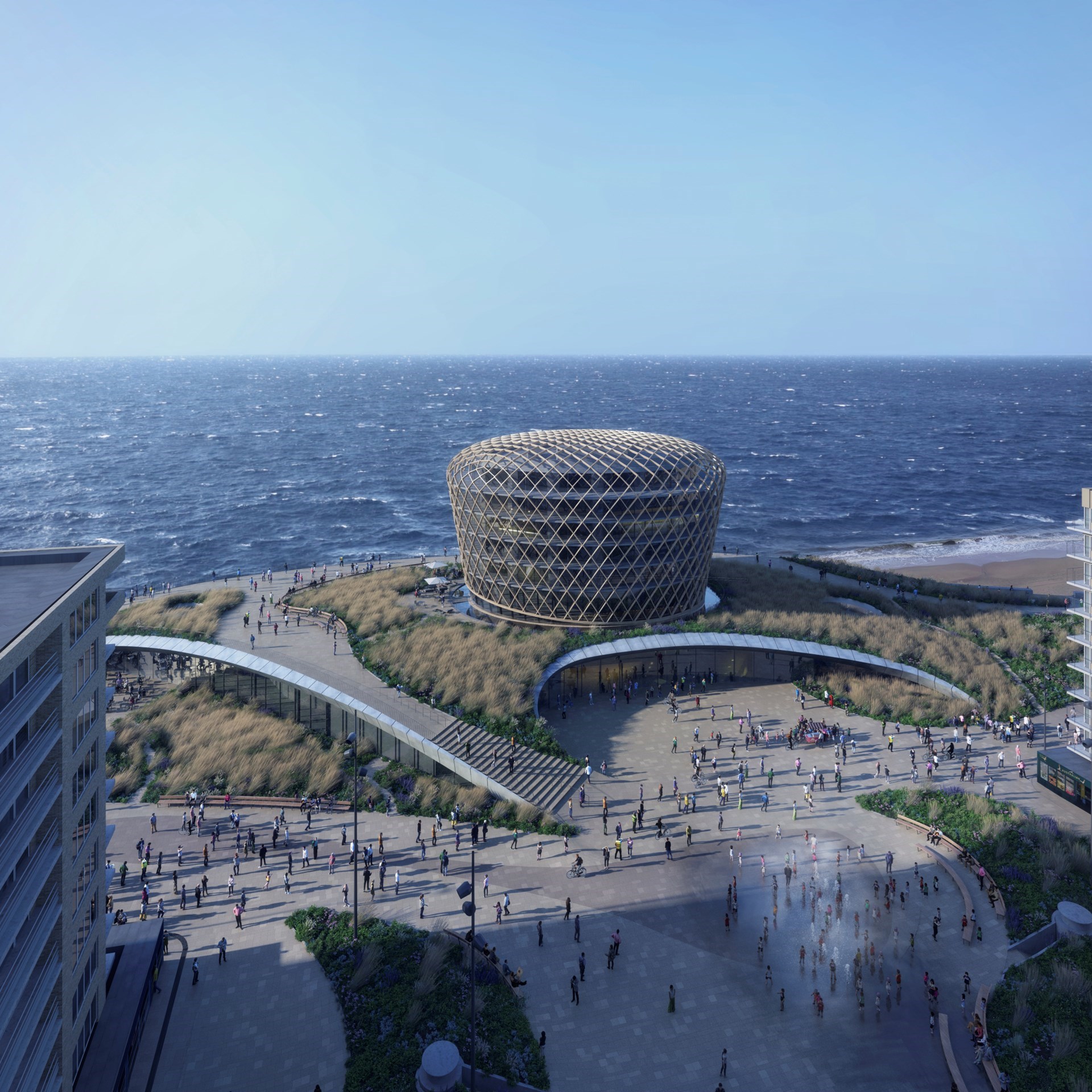 De ziel van het ontwerp schuilt in de intieme integratie met het duinlandschap, de transformatie van het centrum van Middelkerke in een voetganger-vriendelijk gebied en de realisatie van een gebouw, dat als blikvanger werkt. En dat terwijl de zeedijk wordt versterkt die Middelkerke veiligheid biedt, samen met stedelijke vernieuwing en een economische impuls.
