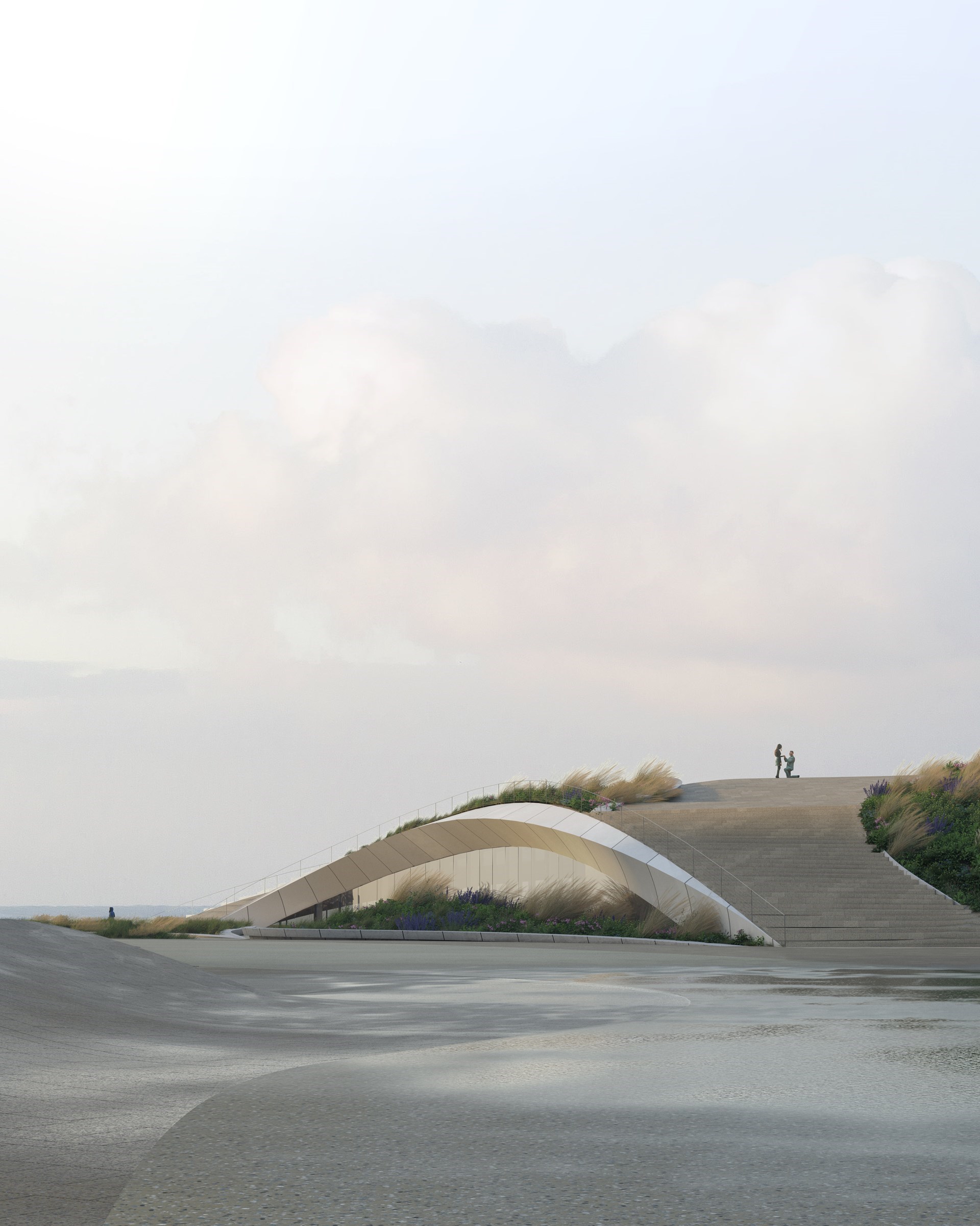 De opdracht om een nieuw evenementengebouw te ontwerpen aan de kust bij Middelkerke en tegelijkertijd de bestaande zeedijk te versterken werd benaderd vanuit het perspectief van het oorspronkelijke landschap. Met het ontwerp wordt een vernieuwd duinlandschap toegevoegd aan de bestaande kust. In het hart van het gebied verrijst een markant gebouw dat als een nieuw baken aan zee staat. Het evenementengebouw Middelkerke biedt onderdak aan een casino, een hotel, een restaurant, een multifunctionele evenementenruimte en een ondergrondse parkeergarage die zorgt voor een autovrije zone op straatniveau. Naast de versterking van de zeewering en autovrije zone levert het ontwerp ook een bijdrage aan de verbetering van de openbare ruimte, door de versmelting van de boulevard en het Epernayplein.