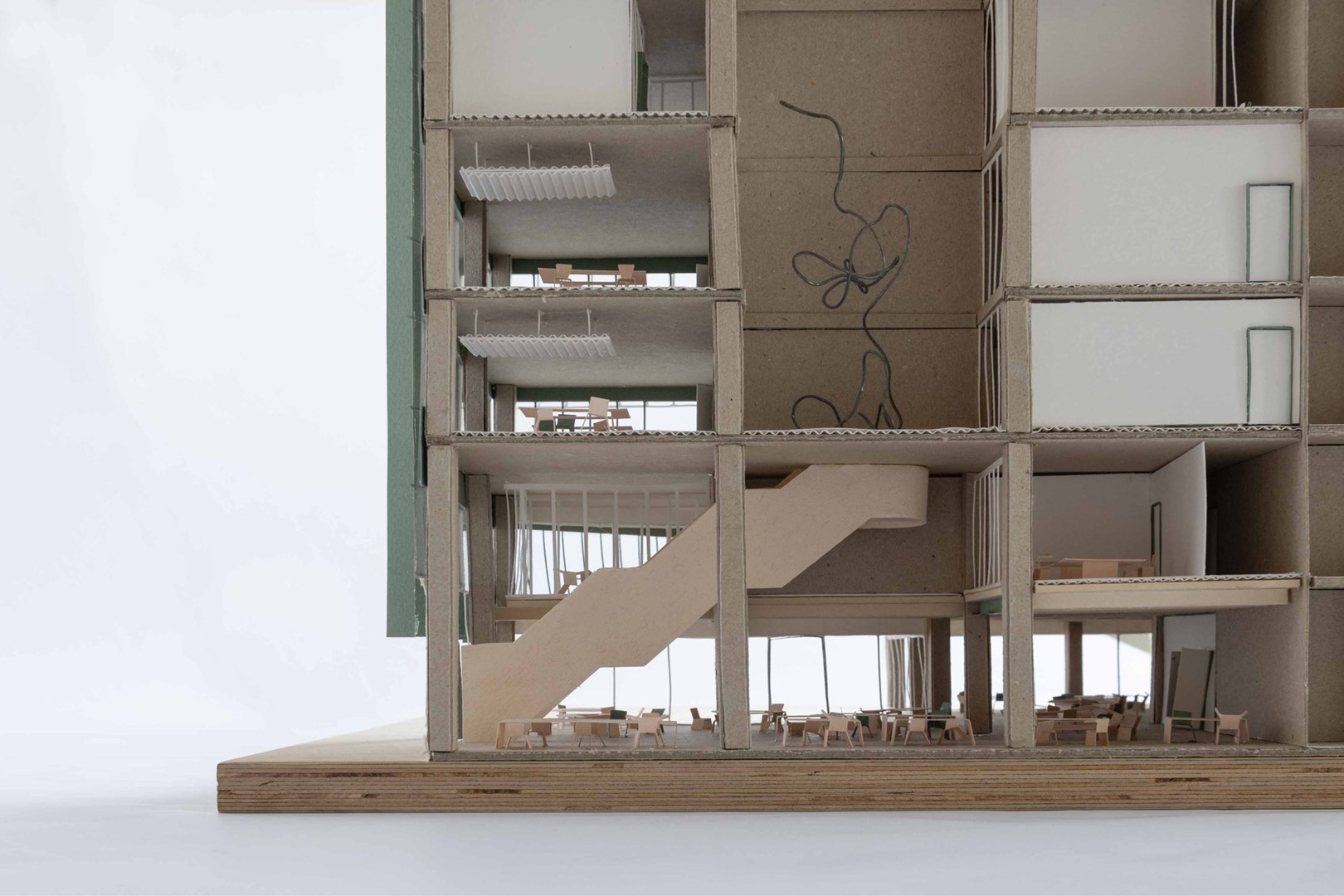 Het gebouwconcept van de plint is open en communicatief en stelt een innige relatie tussen binnen en buiten voorop. Ook moet het gebouw en zijn ruimtelijkheid uitnodigen tot ‘samenleven’ en ‘samenwerken’, in een open geest en open verstandhouding. Deze interacties worden aangemoedigd door een helder en leesbaar planconcept.