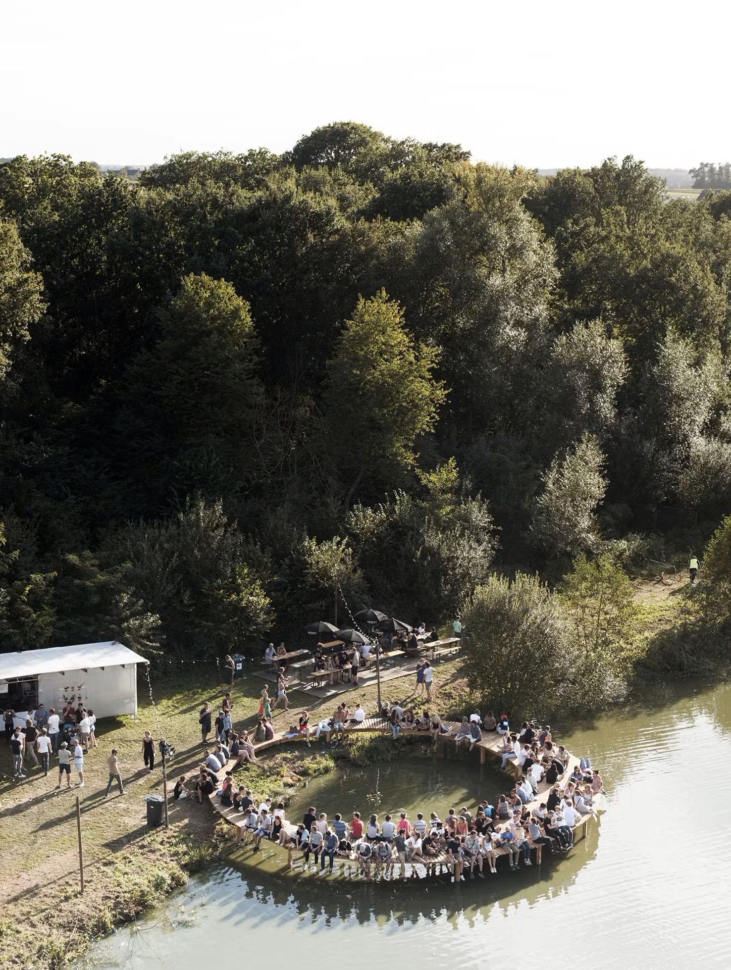 Met hun Tafelzetting speelt fijn in op de verschillende lagen in de aanleg van het plein voor DE SINGEL. De tafels bepalen een nieuwe ruimte, in dialoog met gevonden elementen: de lichtinstallatie van Stéphane Beel en het snijpunt van plein en laan. De tentoonstellingsinstallatie vormt het verlengde van het werk dat de architecten tonen.