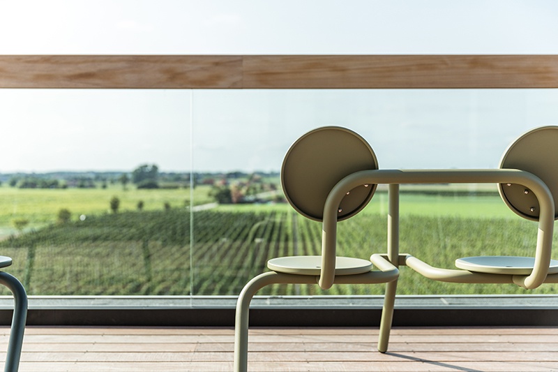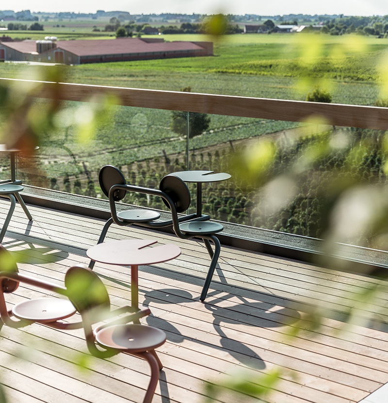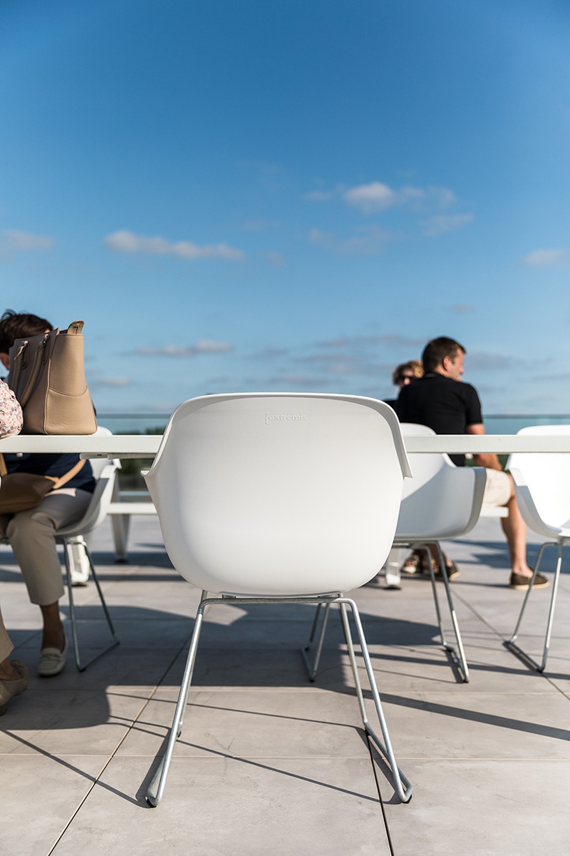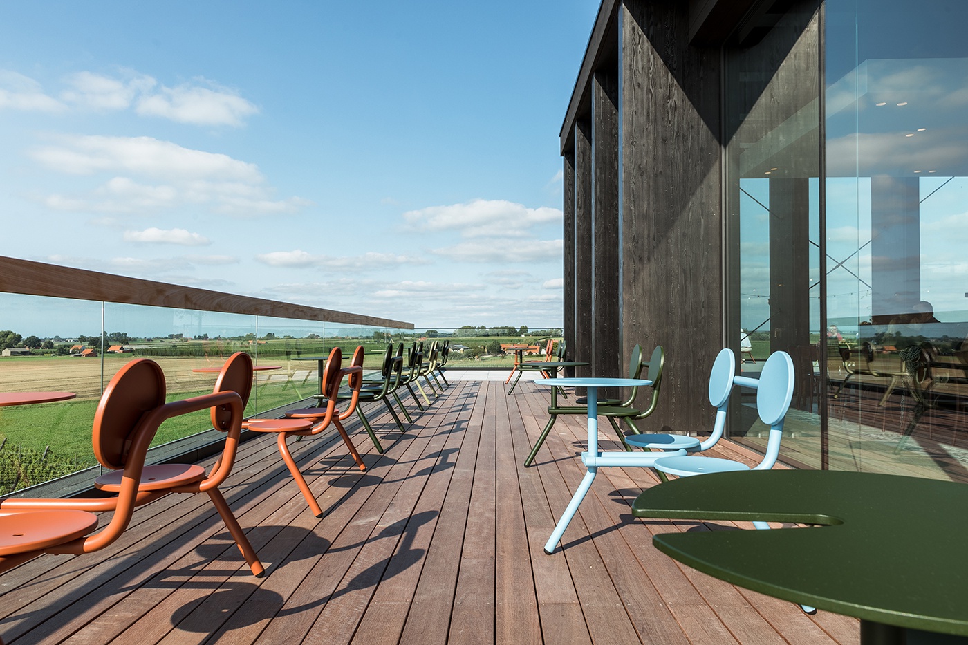Tot slot eert Extremis de natuur rondom door de kleuren door te trekken naar de inrichting van het terras. De Bistroo’s, vervaardigt uit koperbruin, rietgroen en lichtblauw materiaal, kunnen zo in het landschap opgaan.