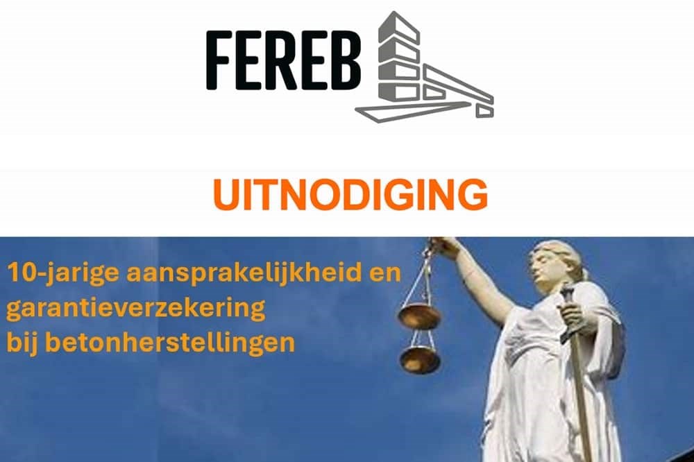 In samenwerking met het gespecialiseerde advocatenkantoor Eeckhout Ottevaere, Joost Beke, Euracor en Socotec organiseert FEREB op dinsdag 26 november 2024 een studienamiddag over de "10-jarige aansprakelijkheid en garantieverzekeringen bij betonherstellingen". Deze studienamiddag gaat door in de gebouwen van Buildwise in Zaventem.