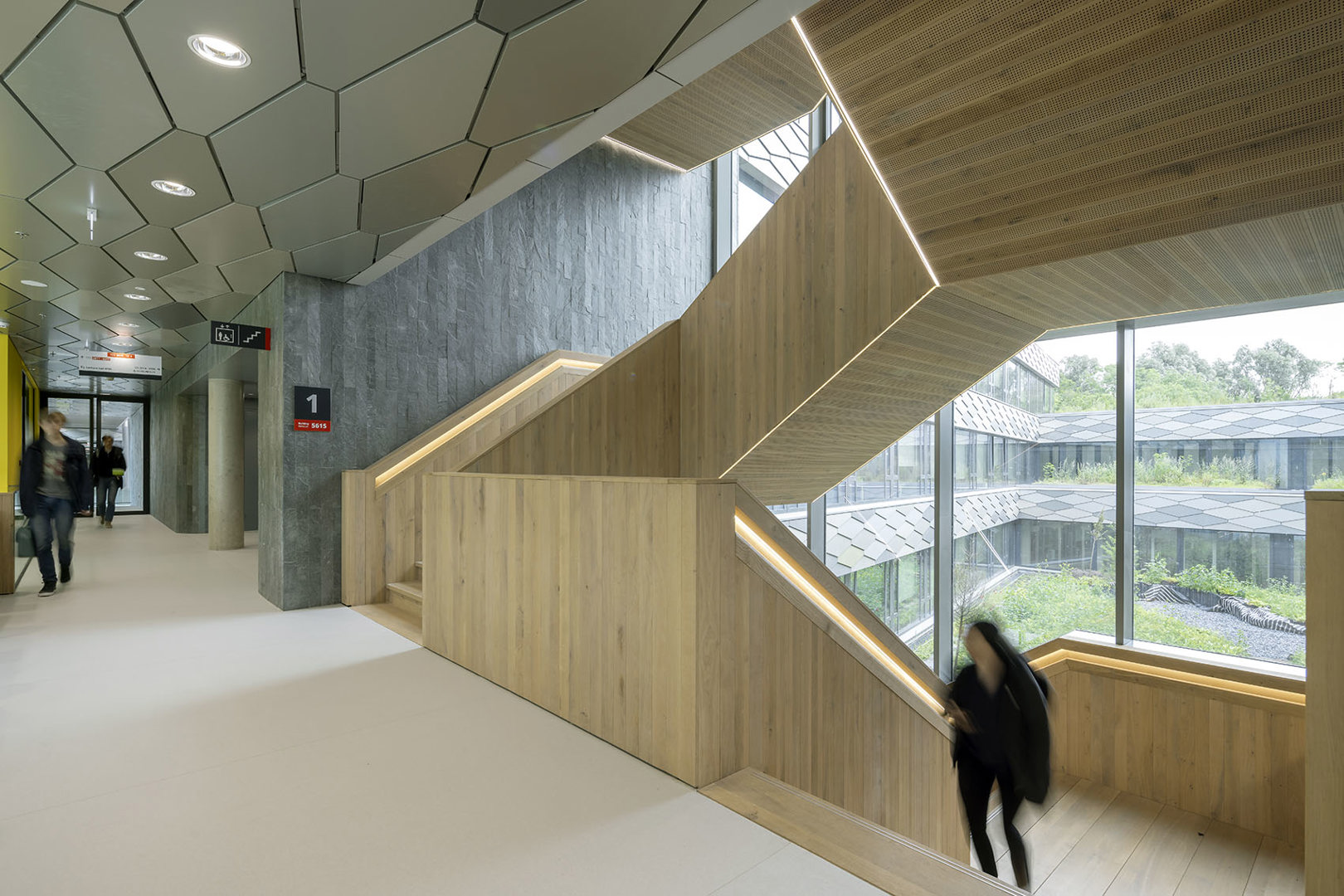 Daarnaast is het gebouw ontworpen voor een lange levensduur. De indeling, installaties en materialen maken toekomstige aanpassingen mogelijk, wat de milieu-impact over de totale gebruiksperiode aanzienlijk verlaagt. Een plafond dat niet alleen technisch goed presteert, maar ook lang meegaat, draagt direct bij aan die duurzaamheid.