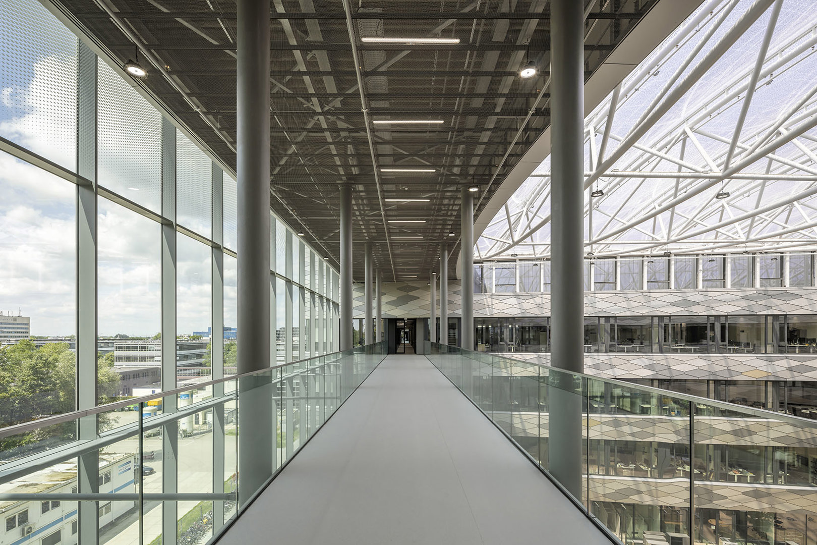 “Vanuit de passages en atria zijn bovendien door middel van zorgvuldig geplaatste zichtlijnen de laboratoria te zien waarin onderzoekers actief zijn. Je ziet mensen dus niet enkel wanneer ze van A naar B wandelen, maar je ziet ook wat ze allemaal in het gebouw doen. Dat vind ik zelf heel leuk aan het ontwerp want het stimuleert nieuwsgierigheid en onderlinge inspiratie”, zegt Joost.