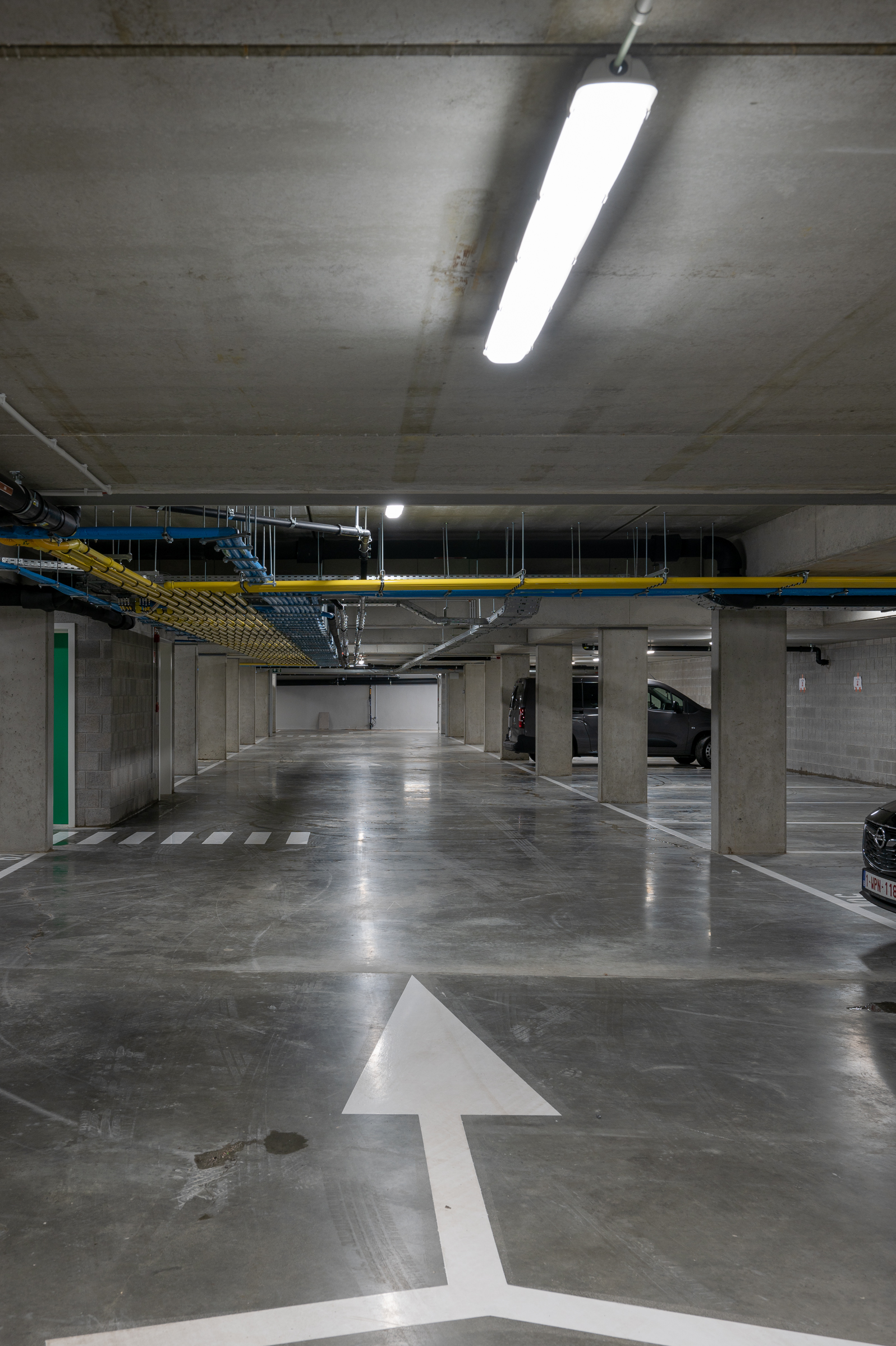 Opvallend is dat de site bijna volledig onderkelderd is. Op niveau -1 is een ondergrondse parking met 91 autoparkeerplaatsen en 118 fietsstalplaatsen gerealiseerd. “De bestaande parkeerkelder van het voormalige kantoorgebouw is uitgebreid met een nieuw gedeelte om het bovenliggende binnengebied autovrij te kunnen houden”, verduidelijkt Luc Baert. “De densiteit van de bebouwing combineren met de gewenste openheid en het natuurlijke cachet van het binnengebied was een delicate evenwichtsoefening, net als het garanderen van de privacy van bewoners en omwonenden. Vandaar dat de nieuwbouwvolumes evenwijdig met het kantoorgebouw zijn ingeplant. De binnentuin is ontworpen door Buro Landschap, inclusief de nodige glooiingen. Deze groene oase is de spreekwoordelijke kers op de taart. Door het binnengebied deels doorwaadbaar te maken, wilden we de troeven van de centrale locatie extra uitspelen. Zo is de Brendelstraat – in het verleden niets meer dan een klein doodlopend steegje – doorgetrokken tussen blokken A en B om een extra entree voor voetgangers en fietsers te creëren. Daarnaast hebben we tevens een doorgang onder blok B voorzien om een rechtstreekse link te leggen met de binnentuin. Dat de appartementen snel uitverkocht waren, bewijst dat dit concept zeker gesmaakt wordt.”