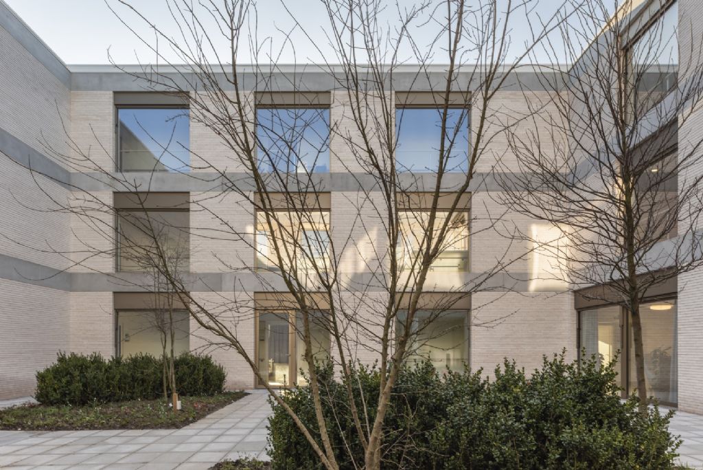 Het was voor B2Ai een uitdaging om het grote programma te koppelen aan de unieke locatie in een randzone van de gemeente Meulebeke. "We opteerden daarom voor een zachte en onopvallende inplanting. Het logisch leesbare patroon ten opzichte van de omgeving, in combinatie met een uiterst gedetailleerd en bescheiden materiaalgebruik, resulteert in een intimistische architectuur met respect voor de omgeving."