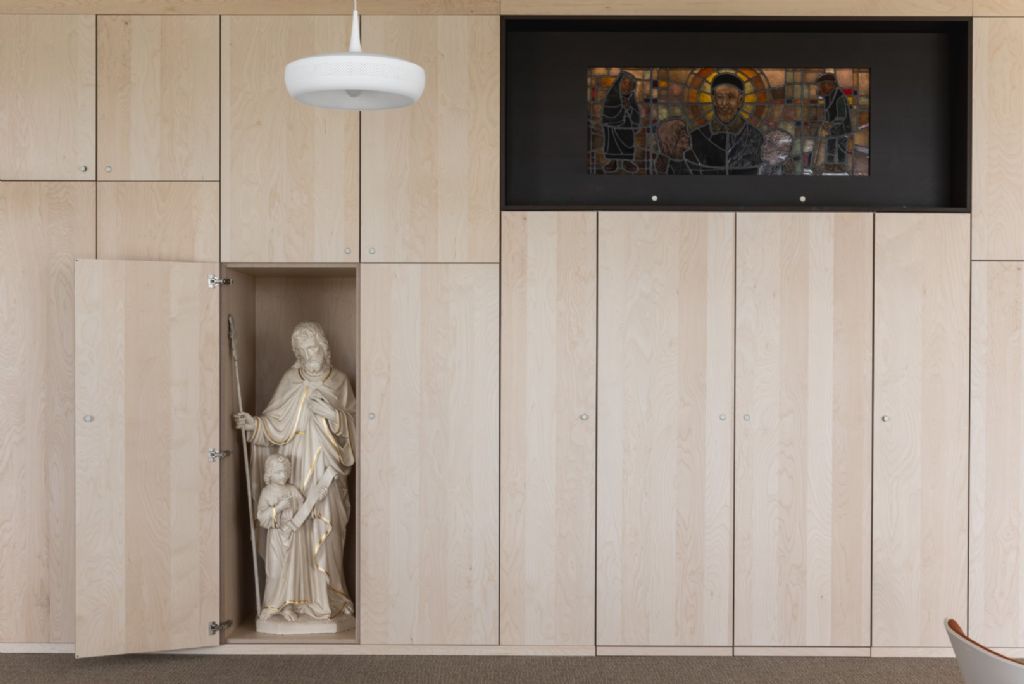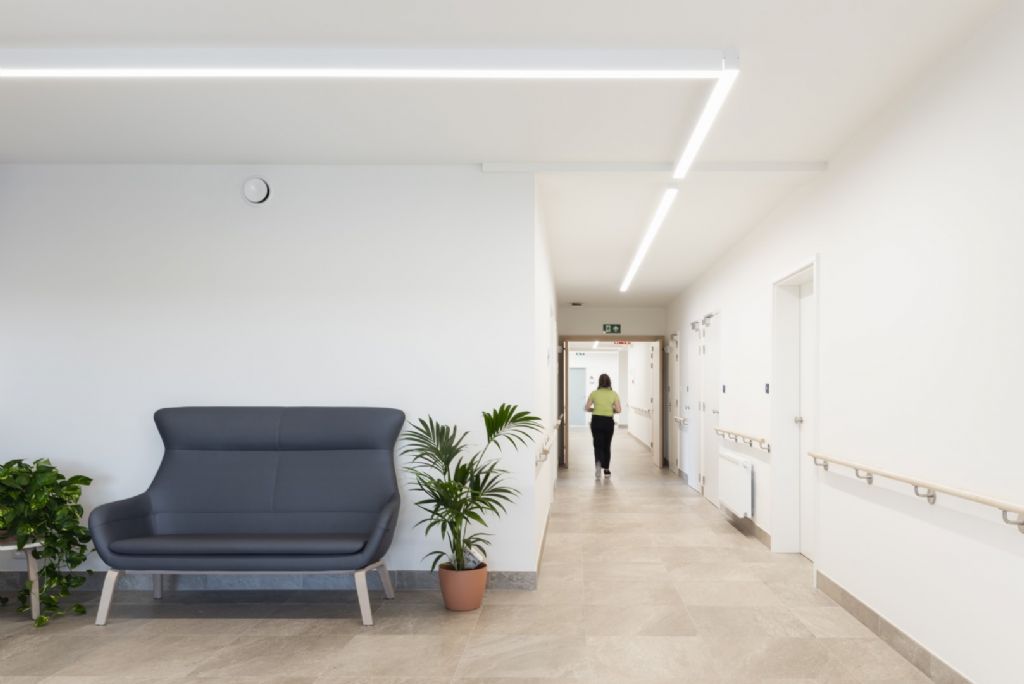 De privékamers binnenin vullen de rust van de buitenarchitectuur aan met zachte, helende kleurtoetsen uit het klavier van Le Corbusier en een uitgekiende verlichting. Een kamerbrede bank nodigt uit om rustig te gaan zitten of er persoonlijke voorwerpen op te zetten.