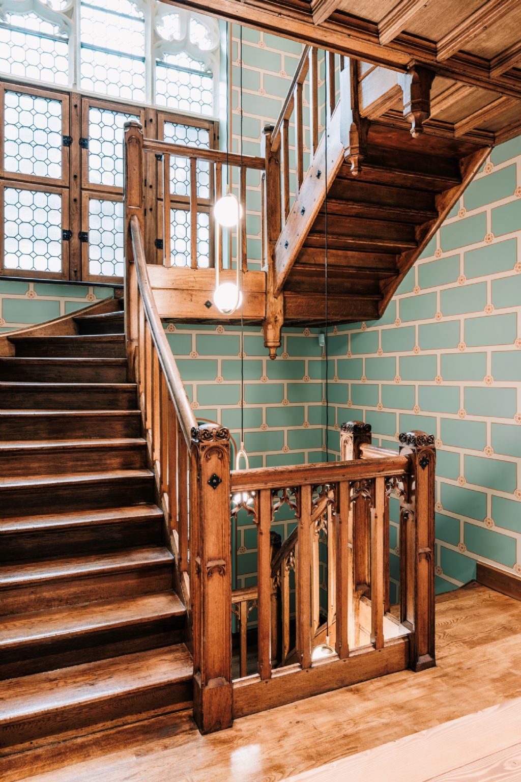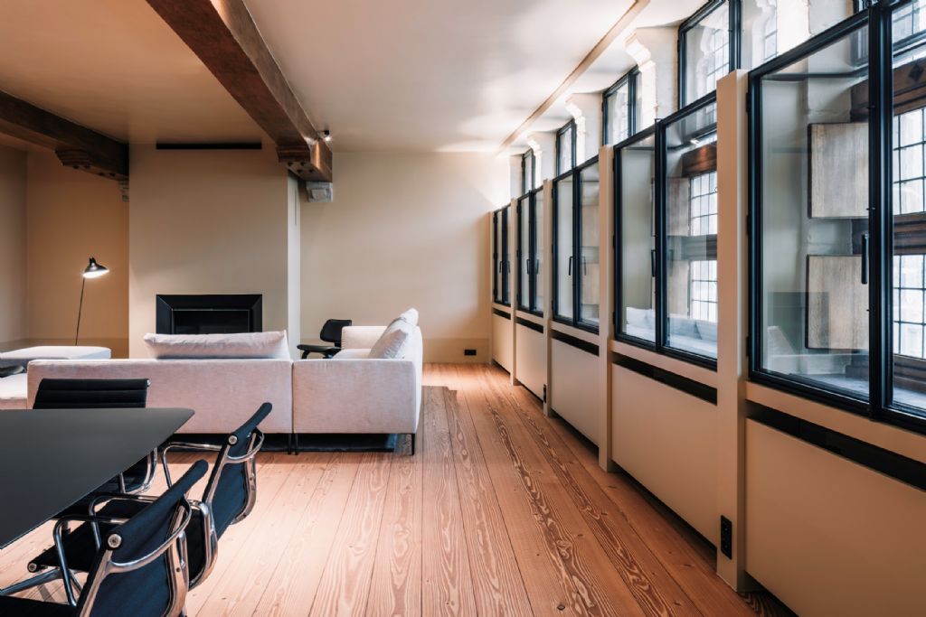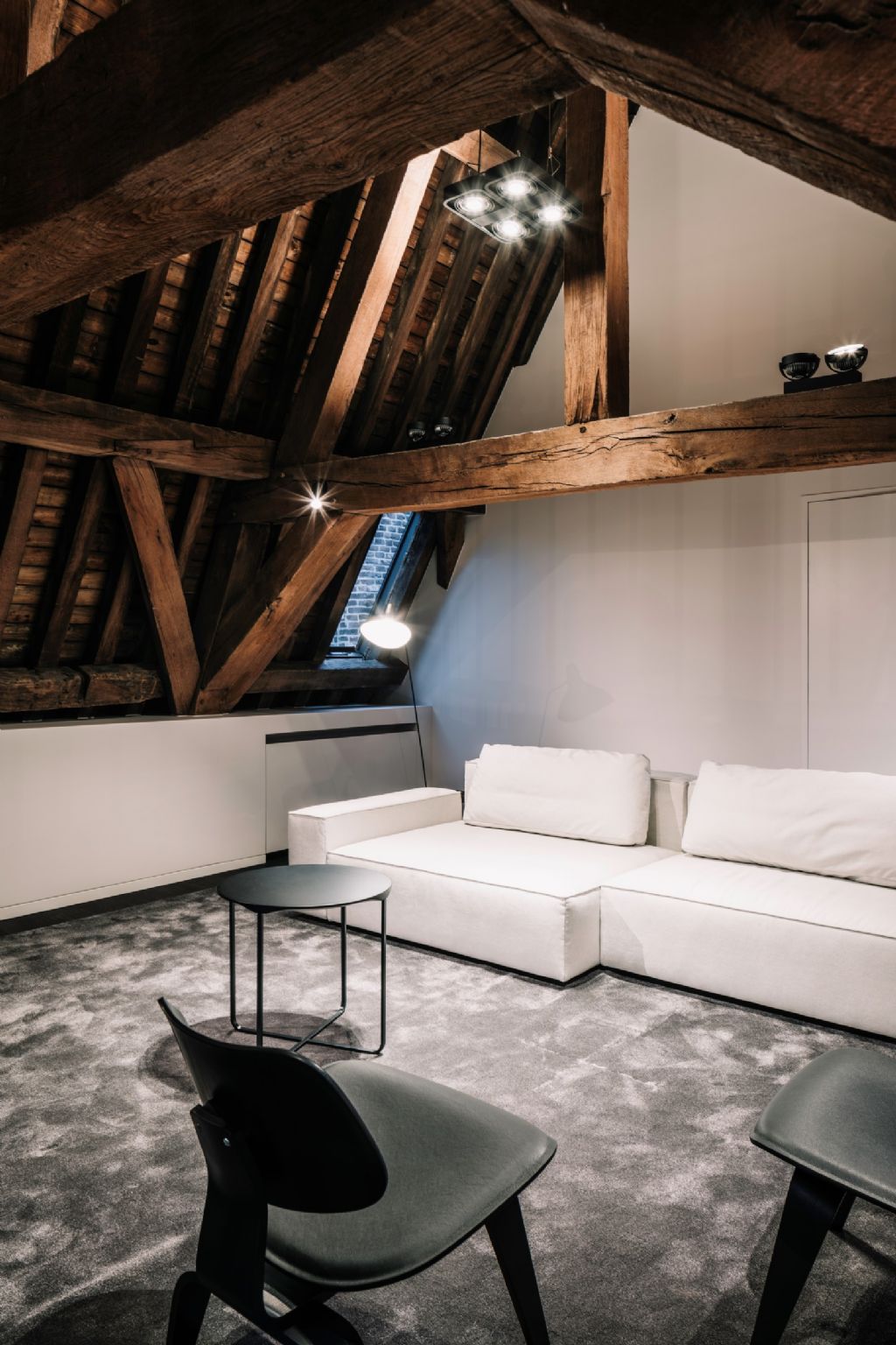 Nieuwe zichtbare ingrepen zijn beperkt gebleven tot de toevoeging van een lift, nieuwe utilitaire ruimtes in de vorm van het box-in-box principe en de realisatie van een moderne aanbouw en achterzetbeglazing.