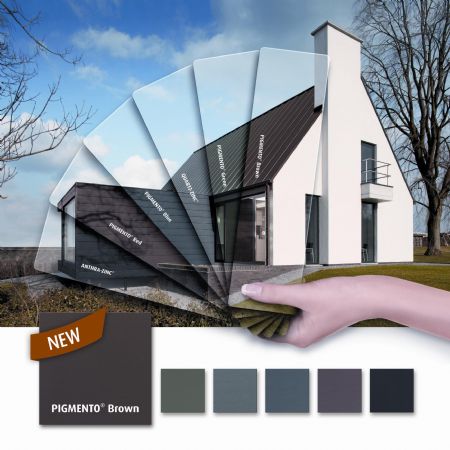 De nieuwe tint PIGMENTO Bruin kan op alle types van gebouwen worden toegepast en op alle vormen van bedekkingen met staande naad waarvan de helling meer dan 5 % bedraagt. Het standaardgamma bestaat uit bladen, bobijnen, accessoires voor staande naad dakbedekkingen, gevelpanelen en accessoires en aangehaakte profielen.