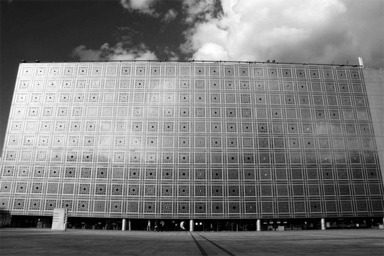 De zuidgevel van het Institut du Monde Arabe in Parijs is zo een mooi voorbeeld van hoe ingewikkelde technische systemen ook een grote architecturale expressie kunnen bezitten.