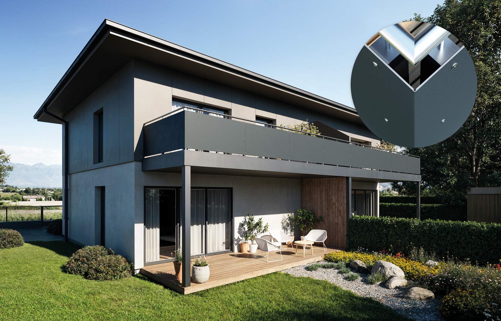 Naast gevelbekleding wordt ALUCOBOND® ook toegepast bij balkons, zowel in eengezinswoningen als in meergezinsprojecten. De panelen zijn aan beide zijden afgewerkt en behouden hun uitstraling dankzij de oppervlakken met verhoogde krasbestendigheid.