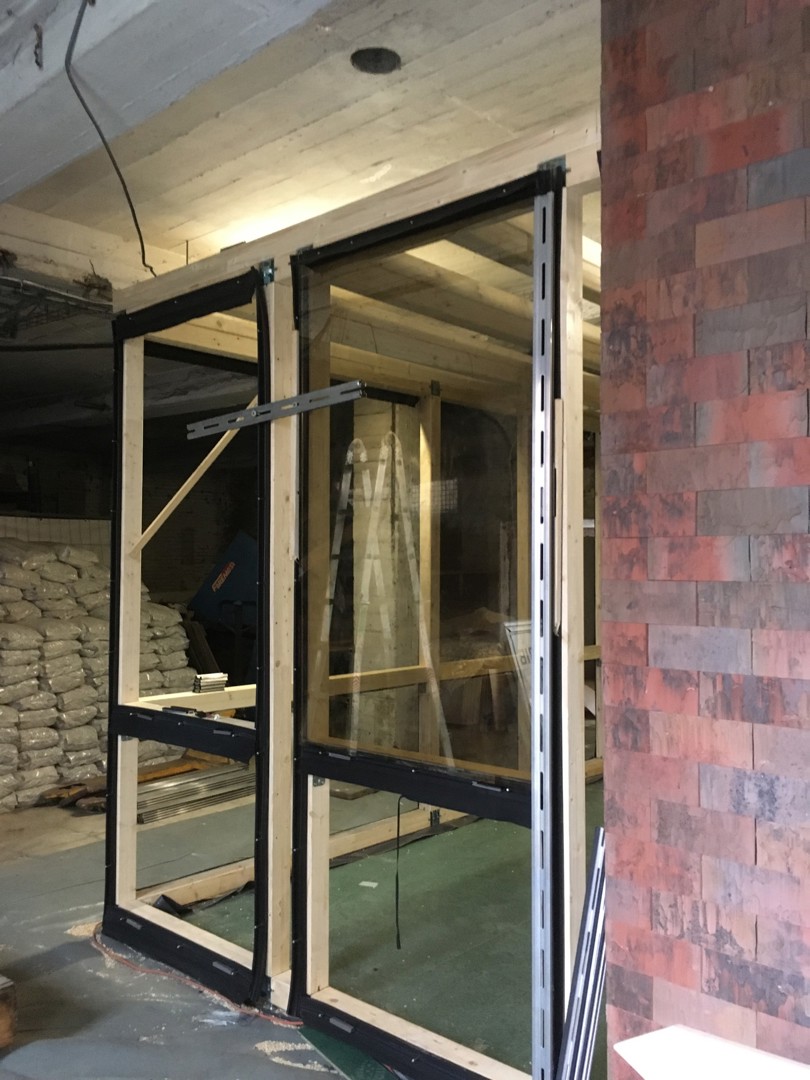 "Ten eerste kan het dus redelijk eenvoudig, mits gebruik van de correcte schroeven, ook op een houten drager gemonteerd worden, terwijl het daar niet voor ontworpen is. Daarnaast gaf de flexibiliteit in maatvoering ons extra tijd om op zoek te gaan naar ‘circulair glas’, wat een hele uitdaging bleek te zijn. De VISS-profielen konden op het laatste moment worden aangepast aan de afmetingen van het recuperatieglas waar we uiteindelijk over konden beschikken."