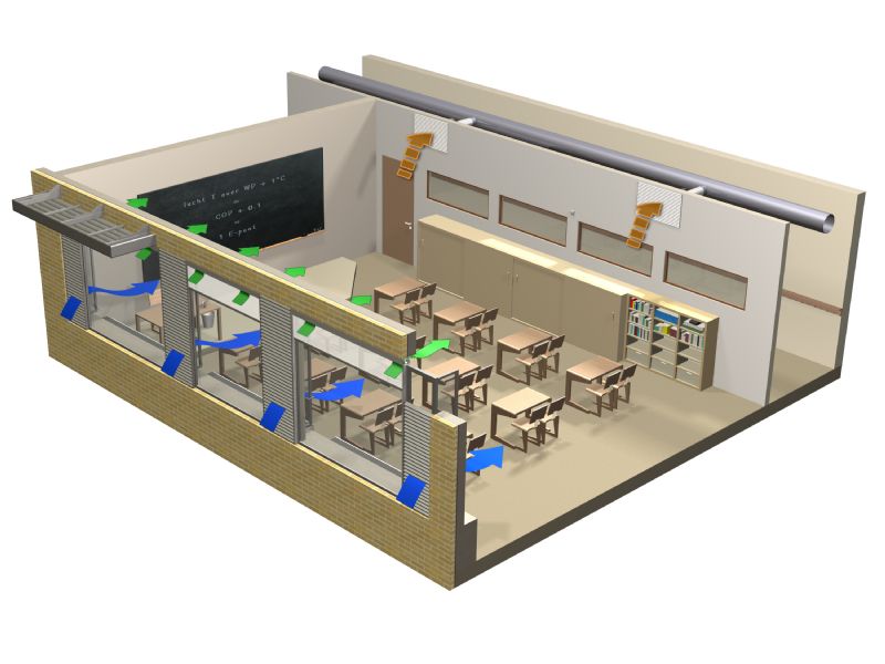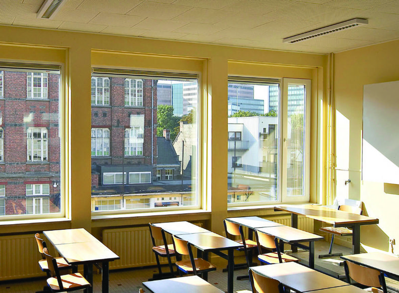 Wereldwijde onderzoeken hebben aangetoond dat de standaard klaslokalen muffe ruimtes zijn met verontreinigde lucht, flikkerende of verblindende verlichting en dat op warme dagen de temperatuur vergelijkbaar is met die van een sauna. Dit zorgt ervoor dat het ziekteverzuim bij leerlingen en leerkrachten stijgt en de prestaties van de leerlingen verslechteren. Eenvoudige maatregelen zoals lokalen aangepast aan het aantal leerlingen of een goede verlichting en isolatie kunnen al veel problemen voorkomen. Een gezond binnenklimaat vermindert namelijk het concentratieverlies en de stress bij de leerlingen en verbetert uiteindelijk de prestaties op school. Belangrijk voor een klaslokaal met een gezond binnenklimaat is de kwaliteit van de binnenlucht en de temperatuur. Johan Debaere, communicatieverantwoordelijke bij Renson, legt uit: “Door de verbeterde isolatie blijven vochtigheid, CO2 en andere schadelijke stoffen in het gebouw hangen, waardoor de binnenlucht wordt verontreinigd. Net daarom is het zo belangrijk om regelmatig en correct te ventileren.”