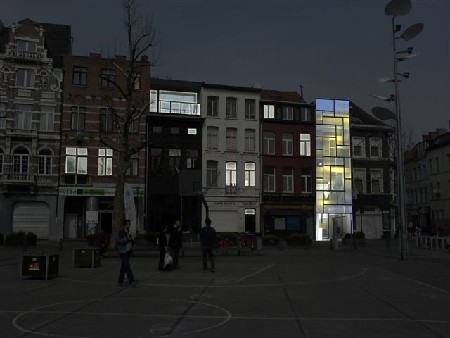Vorige week kregen we op onze redactie een telefoontje van het researchteam van Man bijt Hond dat op zoek was naar enkele markante glazen woningen. Op ons aangeven gingen ze op bezoek bij Pieter Peerlings en Silvia Mertens van Sculp-it die naar verluidt het smalste en zeker ook het kleurrijkste verlichte huis van Antwerpen bewonen.