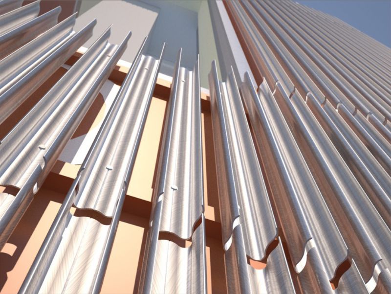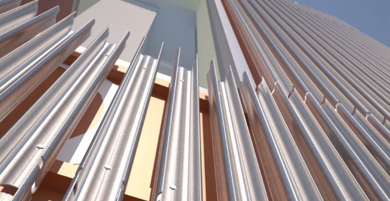In augustus opent de Sydhavn Skole, waaraan sinds 2006 gewerkt wordt, haar deuren. Omstaanders zal het unieke gebouw aan het water niet ontgaan zijn. De dynamische voorgevel zal daar zeker voor iets tussen zitten. Die bestaat uit geprefabriceerde panelen van Rockpanel die schuil gaan achter 100% gerecycleerde aluminium lamellen.