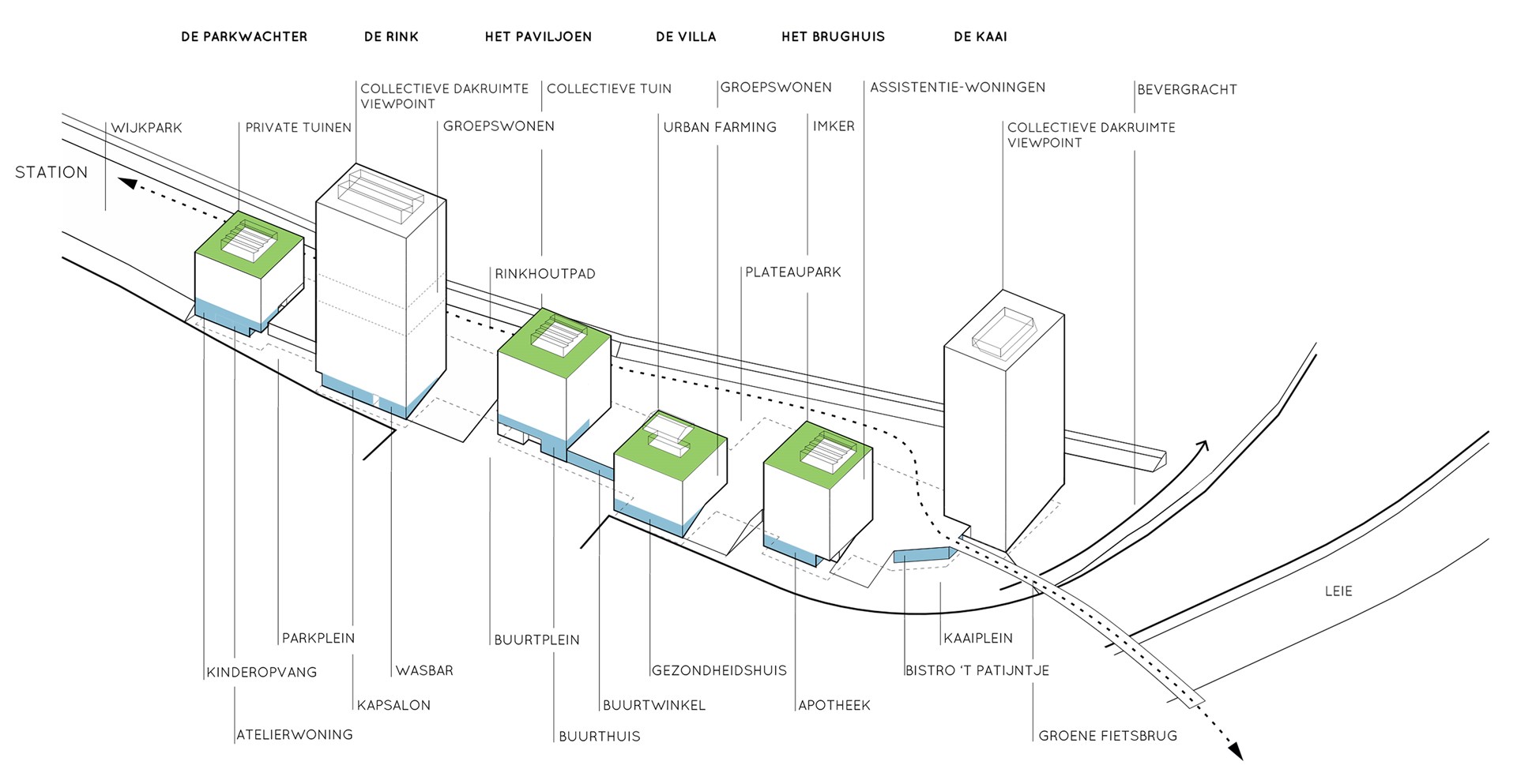 De stad Gent heeft groen licht gegeven voor de bouw van een nieuwe woonwijk met zes woontorens van 65 meter hoog naast het station Gent-Sint-Pieters. Ondanks bezwaren en protest van buurtbewoners heeft projectontwikkelaar Rinkkaai de bouwvergunning verkregen. Het plan omvat zes woontorens met 308 woningen en appartementen, evenals gemeenschappelijke ruimtes en privéterrassen. Rinkkaai won de wedstrijd voor de ontwikkeling van het nieuwe stadsdeel reeds in 2015. De architectenbureaus KCAP, evr-architecten, OMGEVING, OM/AR en Fris in het landschap staan mee in voor het stedenbouwkundig ontwerp, de architectuur en het landschapsontwerp.