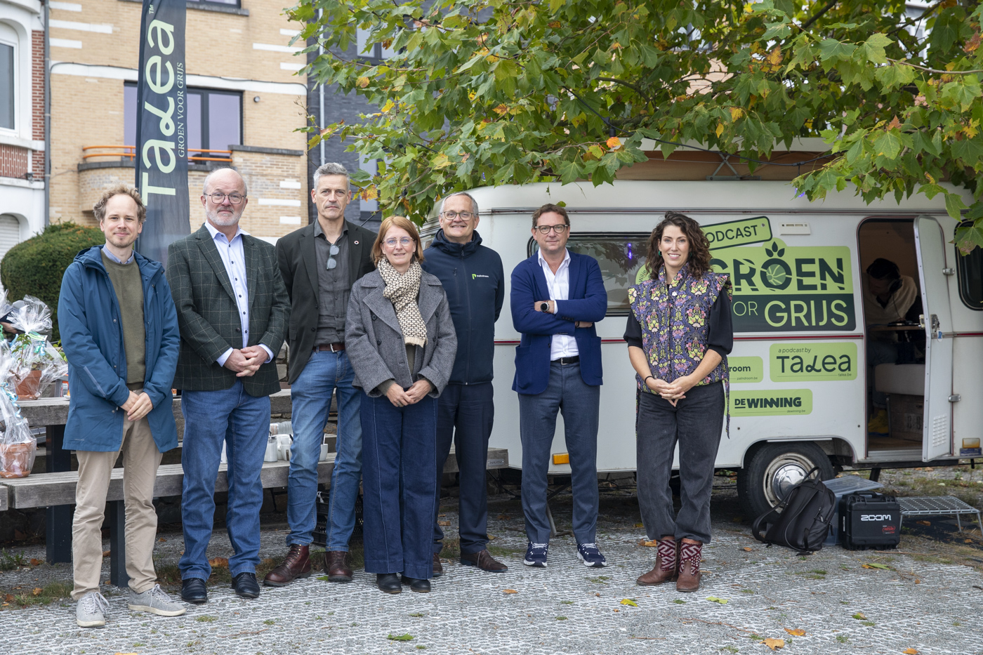 In de derde aflevering van de podcastreeks Groen voor Grijs, een initiatief van Talea in samenwerking met Palindroom, trekken de experts naar park Belle-Vue in Leuven. Samen met moderator Rik Neven van Palindroom bespreken ze de complexe relatie tussen projectontwikkeling en natuur. Een discussiepunt is de vraag of vergroening en verblauwing het rendement van projectontwikkelaars in gevaar brengen. Te gast zijn Nicolas Bearelle van Revive, Liesbeth Reekmans van vzw Bomen Beter Beheren en Charlotte Van de Vijver van Sylva en Marius.