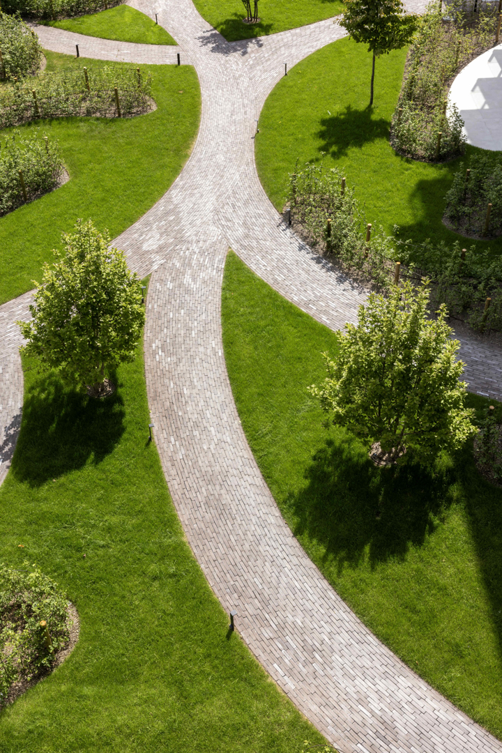 “Een van de grote uitdagingen bij Emerald Garden was het beperkte draagvermogen van de dakstructuur op de parking,” legt Kaat Van de Waeter uit. “Een traditionele opbouw met enkel substraat was daardoor niet haalbaar. We kozen voor een innovatieve lichtgewichtopbouw die het mogelijk maakte om de draagstructuur optimaal te benutten. Op die manier konden we toch een stabiele en voldoende diepe onderbouw creëren om een volwaardige tuin aan te leggen,” aldus Van de Waeter.