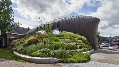 Het gerealiseerde concept is uniek en innovatief. De architect heeft er bewust voor gekozen om de vloeiende lijnen in het ‘groene talud’ te houden, zodat deze aansluit bij het poppodium. De uiteindelijke constructie is gerealiseerd zonder enige concessie te doen aan deze esthetische vormgeving van het originele ontwerp.
