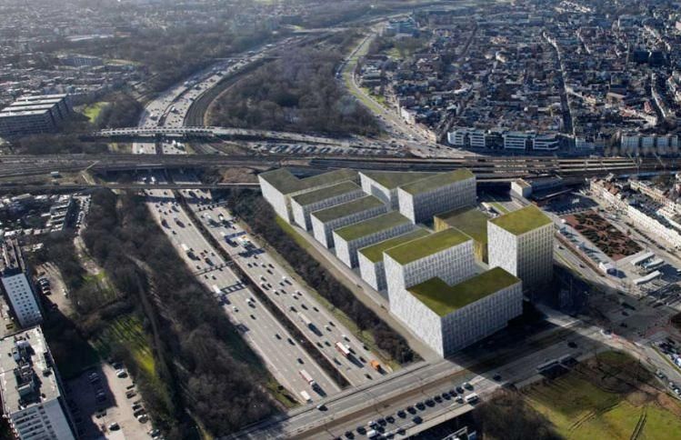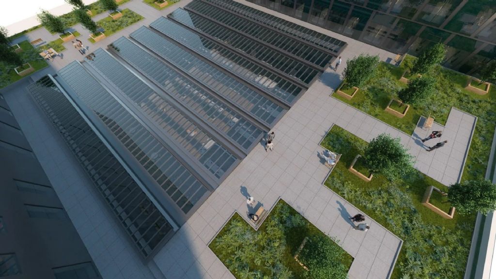 Groene terrassen en technische looppaden op mastergebouw politiezone Antwerpen