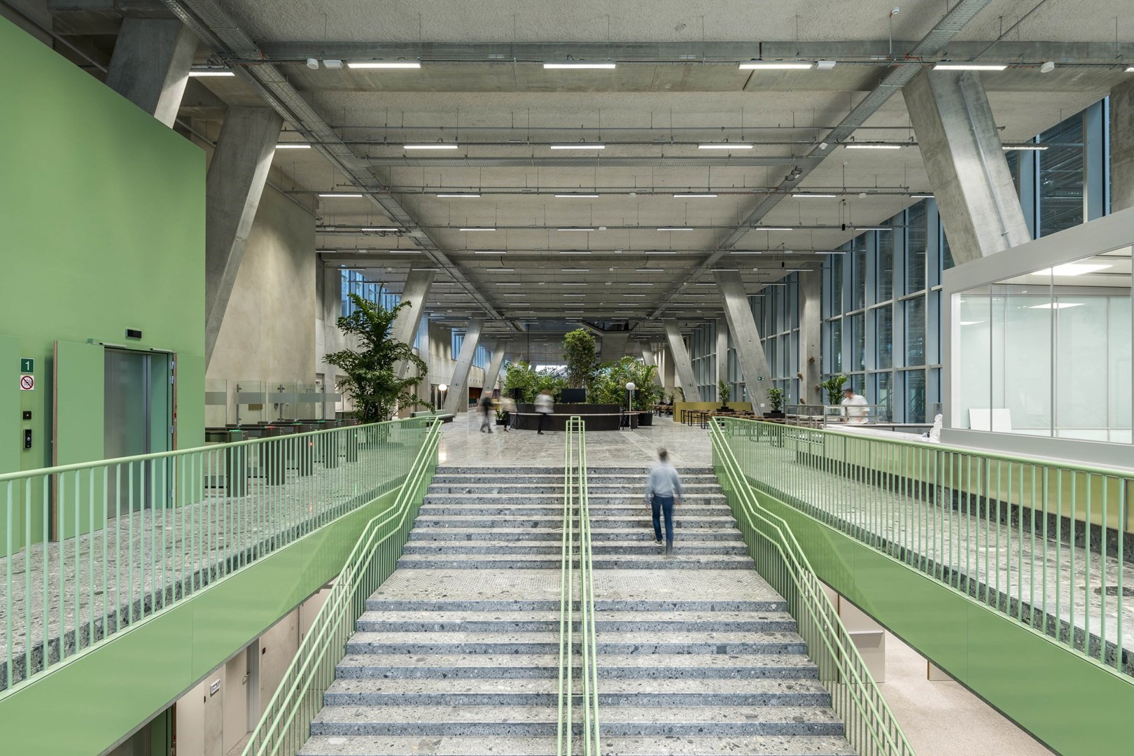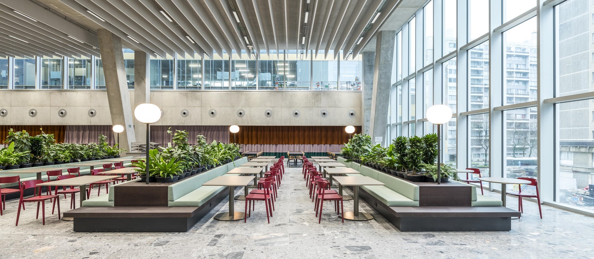 Het gebouw is ook aanpasbaar – toch een stap verder dan multifunctionaliteit. De neutrale opbouw zorgt ervoor dat ruimtes die nu kantoren zijn, zonder ingrijpende werken woningen of hotelkamers kunnen worden en omgekeerd. Het gebouw is dus niet enkel gericht op de noden van vandaag maar ook op die van morgen.