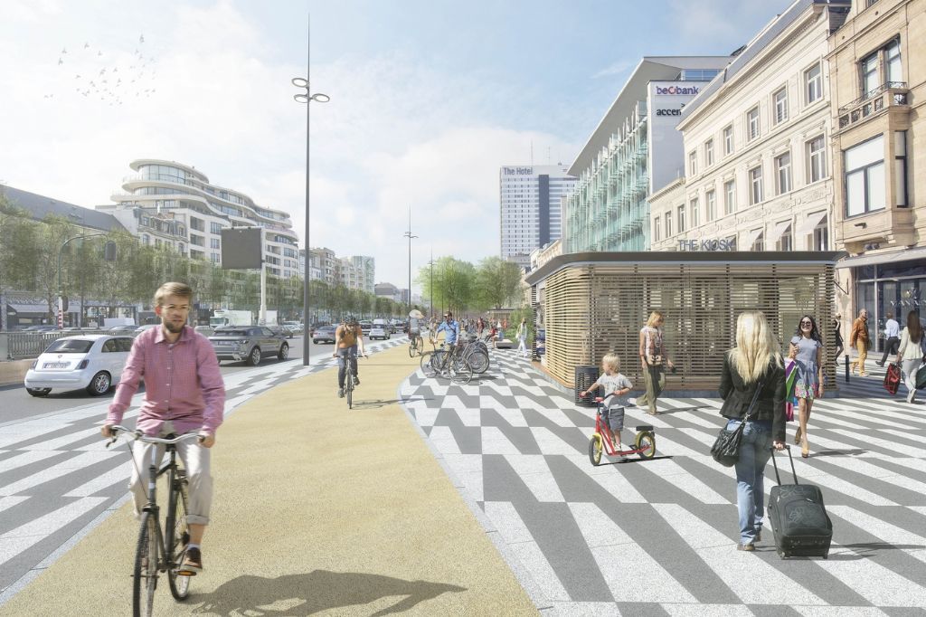 Naast de promenade, de verbinding tussen de boven- en benedenstad via het Egmontpark en de veilige oversteekplaatsen op de Kleine Ring, komt er een grote esplanade en een kiosk aan de kant van de rotonde op Louiza.