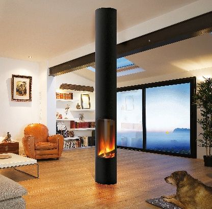 Haardenbouwer Focus presenteert de allereerste hangende haardkachel uitgerust met een concentrische schoorsteen, wat een goede partner moet zijn voor lage energiewoningen en passiefbouw.