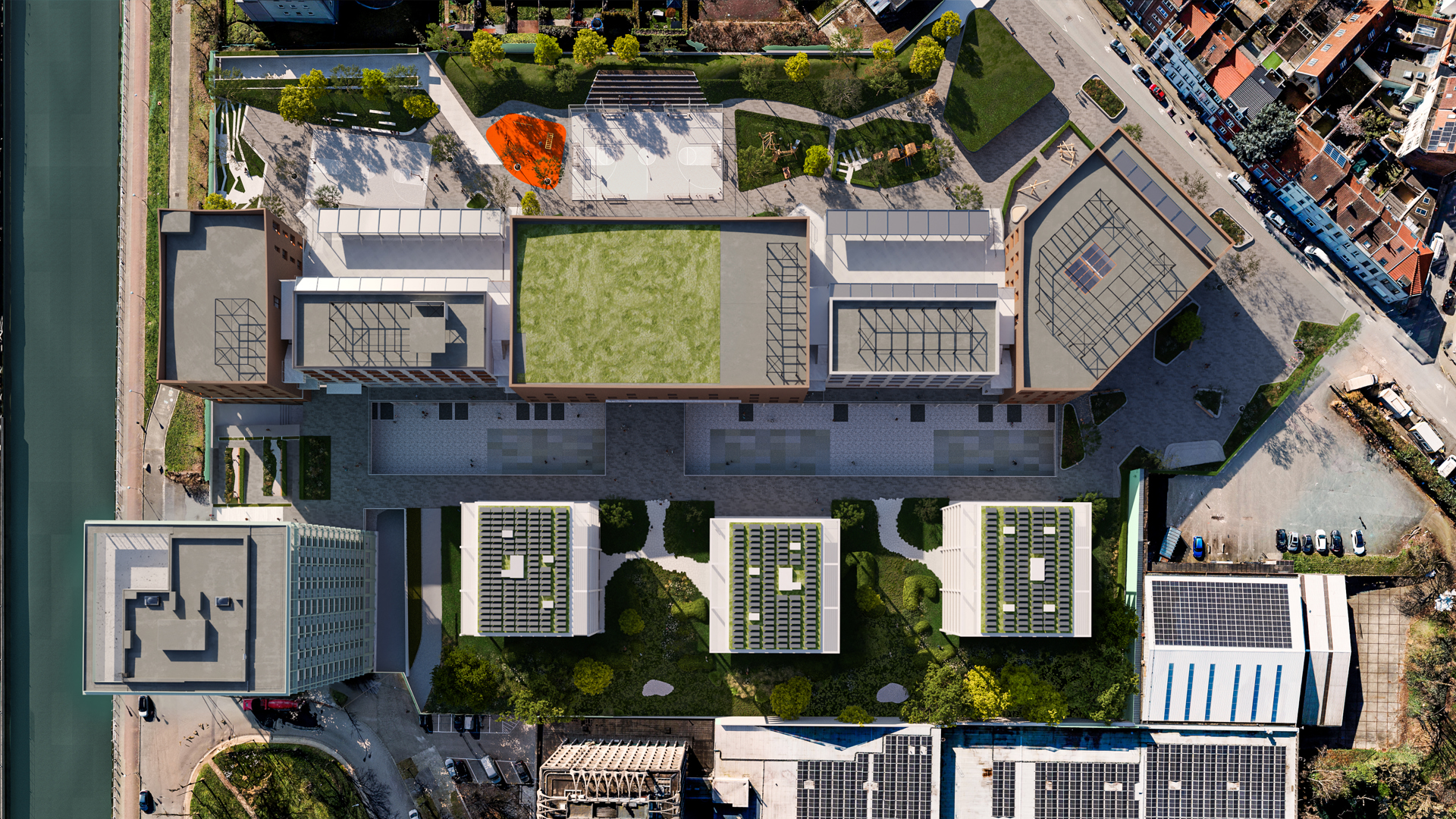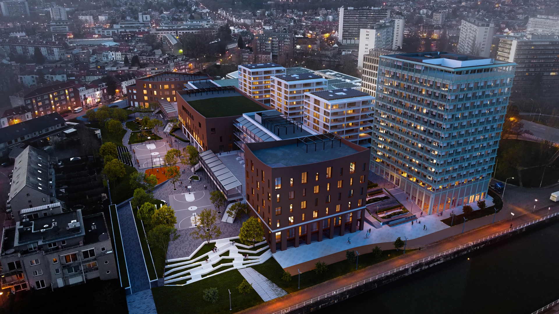 De nieuwe Campus Stream bestaat uit een kinderdagverblijf, een basisschool (Stroomboot) en een secundaire school (GO!4TECH) waar ASO-, TSO-, BSO- en STEM-richtingen worden aangeboden. De site bevat ook polyvalente ruimtes voor volwassenenonderwijs én gedeelde sportinfrastructuur die toegankelijk blijft buiten de schooluren. Dat vraagt om een doordachte aanpak op vlak van veiligheid, toegankelijkheid en flexibiliteit – precies waar ASSA ABLOY in uitblinkt.