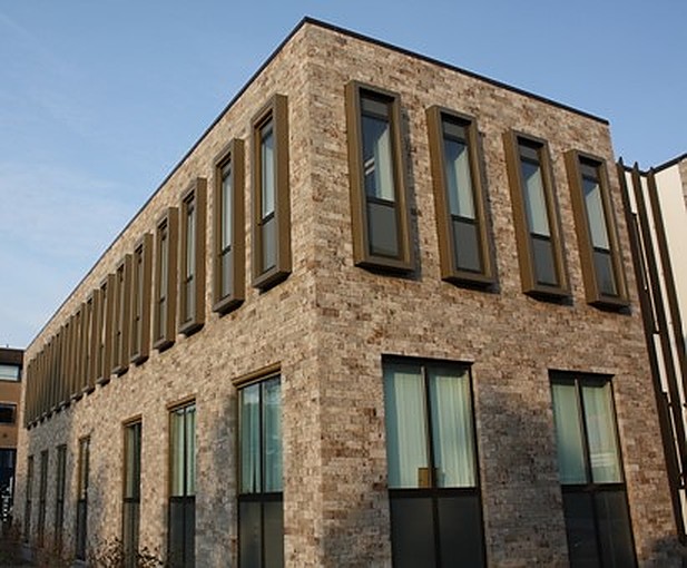 Cools noemt ook enkele projecten waarin de genoemde oplossingen werden toegepast. “Bij de bouw van het Red Cross Hospital in het Nederlandse Beverwijk (foto), een ontwerp van Leeuwenkamp Architecten, werd ons ClickBrick-systeem gebruikt. Spectrum, een nieuw kantoorgebouw in Brussel naar een ontwerp van Jaspers-Eyers Architecten, werd dan weer bekleed met onze Argeton-panelen. Mundo-a in Borgerhout, een gebouw ontworpen door B-architecten, waar met Pixii en VIBE vzw twee experten in duurzaam bouwen hun kantoren hebben, werd bekleed met dakpannen van Wienerberger, die speciaal voor het project een groene glazuurlaag kregen. De keuze voor de Koramic Vlaamse Pan 401 werd deels ingegeven door de voorwaarde dat Mundo-a een gezond gebouw moest zijn waarbij bio-ecologische materialen werden gebruikt, wat de kleidakpannen, gemaakt van lokale en natuurlijke materialen, uiteraard zijn. Bij een project in Spermalie (foto) van architect Gino Debruyne werden onze stenen dan weer gemetst met kalkmortel, zodat ze later herbruikbaar zijn. Ook bij een circulair proefproject in Kortrijk, waren we betrokken. Daar worden gerecupereerde gevelstenen en pannen gecombineerd met nieuwe circulaire materialen van Wienerberger. Uiteraard wordt daarbij gebruikgemaakt van kalkmortel. Je ziet, het lijstje dikt al aardig aan.”