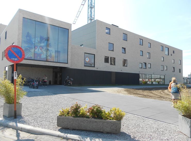 Bij de brede overdekte inkomhal lopen we meteen langs de ‘H’ door. “Die steunkolom in de vorm van de ‘H’ is het eerste wat opvalt als je het gebouw betreedt,” vertelt architect Danny Windmolders van F.C.S. “De ‘H’ in de naamgeving is overigens interessant omdat ze multi-interpretabel is en origineler klinkt dan pakweg Youth Hostel Hasselt op z’n Amerikaans of het (te) Vlaamse en saaie Jeugdherberg Hasselt."