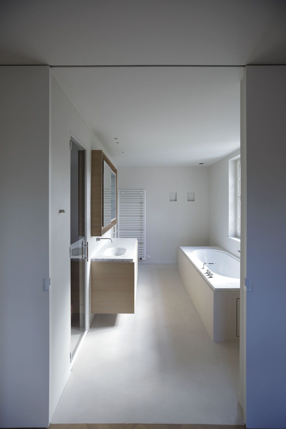 Deze nieuwbouwwoning, gemaakt voor een gezin met 3 kinderen, heeft een warm en hedendaags interieur. Wie het gebouw betreedt, komt terecht in de inkomhal. De grote witte vlakken, de hoogte en de akoestiek doen denken een kathedraal en geven de inkom een indrukwekkende en sacrale sfeer.