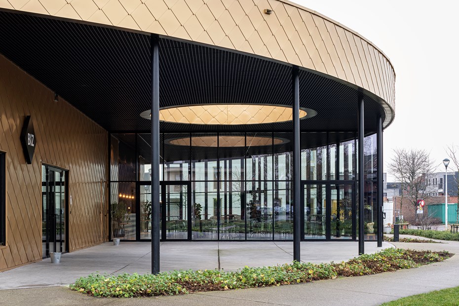 Het spel met de ruit - een vierkant met een punt op een hoek - wordt door de architecten herhaaldelijk en in vele variaties toegepast. Ook de gevel wordt gevormd door een gebogen gordijngevel waarbij de juiste balans gevonden moest worden rond energie-efficiëntie om de duurzaamheid (Energy62ST) van het gebouw te garanderen en de extra akoestische vereisten welke gesteld werden aan een concertzaal.