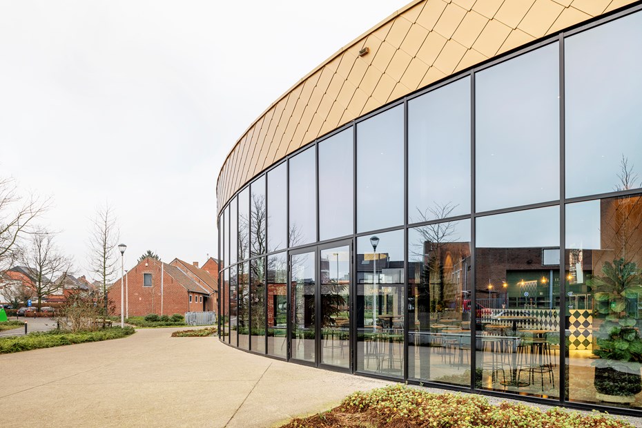 Het gebouw, met koperkleurige tegels en veel glas, is het nieuw ankerpunt geworden binnen de gemeente. De grote zaal is een polyvalente ruimte waar voorstellingen en concerten kunnen gegeven worden in de meest comfortabele omstandigheden. Op de uitschuifbare tribune is plaats voor 404 toeschouwers.