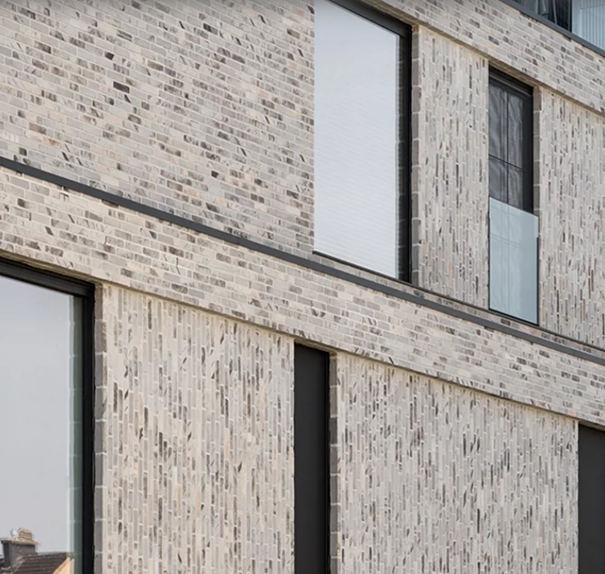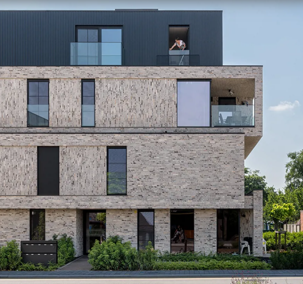 Residentie Carpinus in Wachtebeke laat zien hoe materiaalkeuze een gebouw identiteit geeft. Acke & Van Wynsberghe tekenden een horizontaal gelaagd ontwerp waarin de gevels bekleed zijn met de NATURE7 Brick W van Vande Moortel. De bleke en natuurlijke schakeringen van deze handvorm steen zorgen voor warmte en expressie, waardoor de residentie zich onderscheidt van de vaak koele, witte architectuur in Vlaamse dorpen.