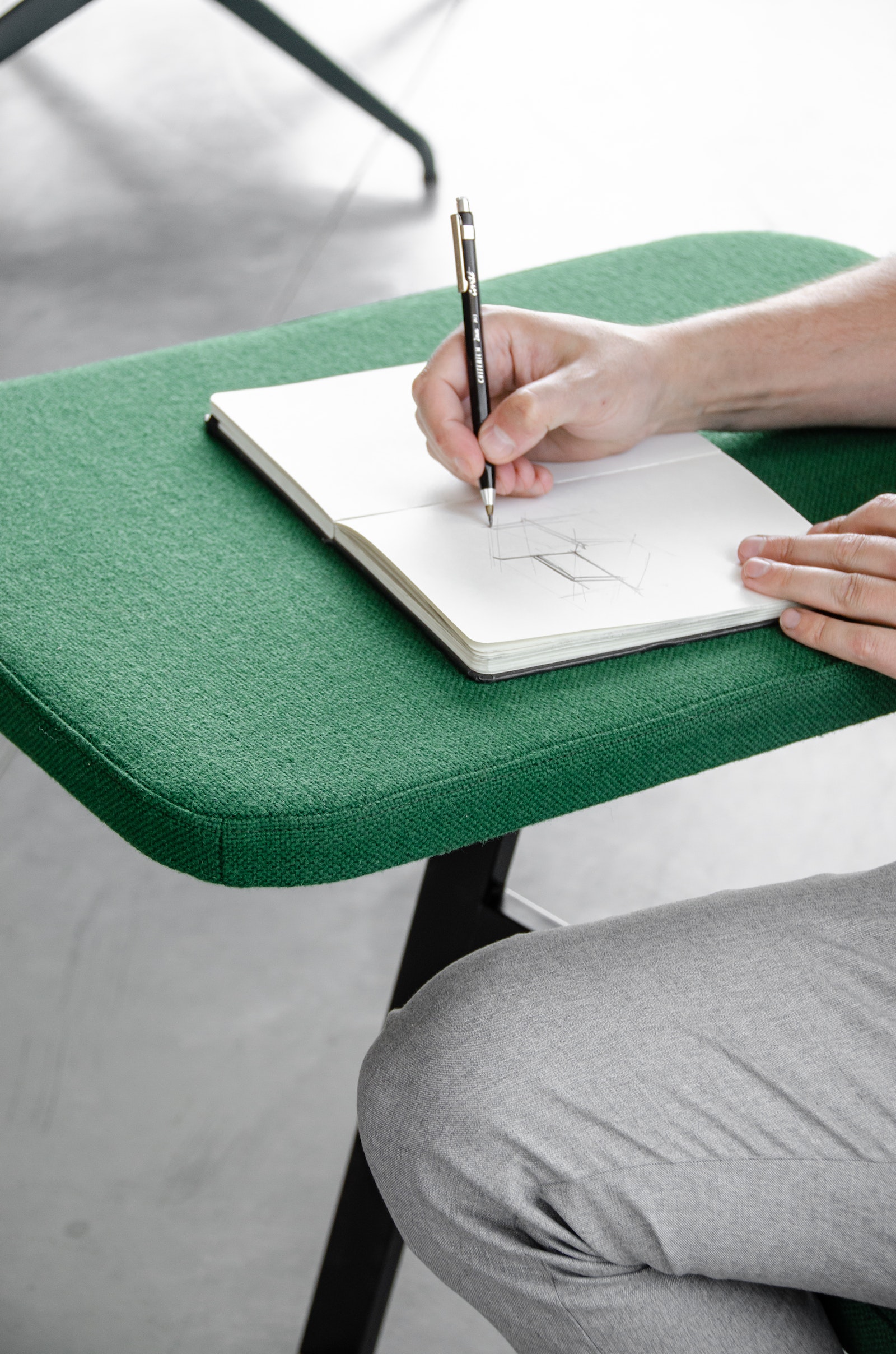 Michaël Kruijne: “Het Poly-concept is gestart vanuit verschillende aspecten, namelijk form follows function, frugality en foresight function. Het concept is een zitmeubel op de grens tussen ontspanning en productiviteit. De multifunctionaliteit resulteert in gebruiksmaximalisatie. Frugality: het concept van constructieve vereenvoudiging om zo materiaaloverschotten te beperken en herstelbaarheid te vergroten met Drisag als lokale producent. Kiss (keep it smart & simple)! Foresight: het herbekijken van restmateriaal en afval. In de eerste plaats beperken we overschotten door een efficiënt productieproces, om vervolgens de restmaterialen en afval te integreren in de toeleveringsketen als nieuwe grondstoffen.”