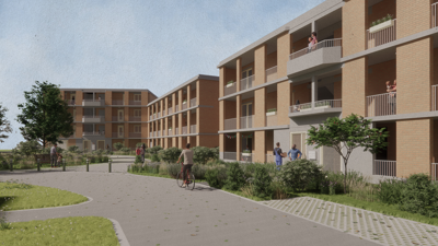 De renovatie van het voormalige Sint-Helenaziekenhuis zet in op behoud en herbestemming. BLAF architecten koos ervoor om de historische bakstenen gevel te restaureren, een element dat diep verankerd is in het collectieve geheugen van Sint-Gillis-Waas. “Het behoud van deze gevel is cruciaal om de site haar identiteit te laten behouden,” zegt architect Bart Vanden Driessche. Achter deze gevel verrijzen 46 zorgflats, ontworpen met een focus op duurzaamheid en flexibiliteit. De appartementen zijn voorzien van ruime terrassen met uitzicht op het park en kunnen aangepast worden aan de veranderende noden van bewoners.