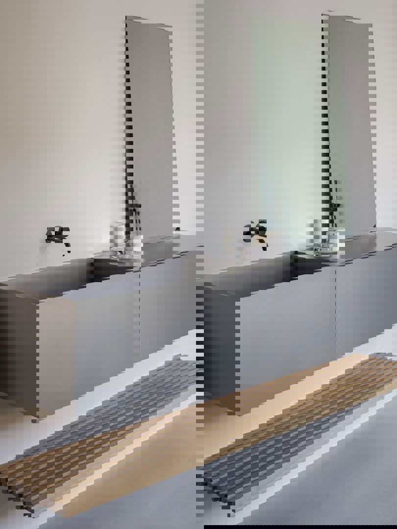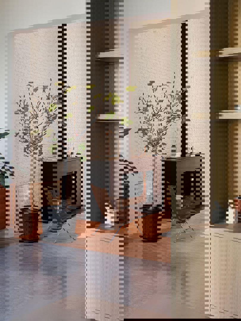 Ook binnen overheerst een gevoel van rust en ademruimte. Geparelstraalde roestvaststalen meubels en gepolierde betonvloeren contrasteren mooi met warme eikenhouten accenten. De sobere kleuren en het overvloedige daglicht versterken de sereniteit. Hoge plafonds en royale ruimtes zorgen voor een ruimtelijke adem die in vele herenhuizen verloren is gegaan. Herenhuis Miel toont hoe aandacht voor materiaal, licht en lucht kan leiden tot een tijdloze elegantie waarin welzijn en architectuur één worden.