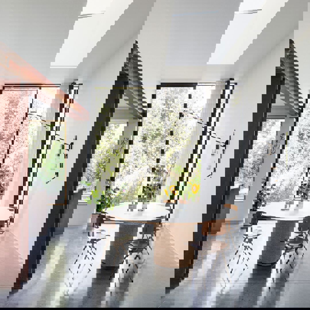 Het statige herenhuis uit het begin van de twintigste eeuw verkeerde in opmerkelijk goede staat. De opdracht: het pand opentrekken rond een leefkeuken, de band met de tuin versterken en een evenwicht vinden tussen oud en nieuw. De ontwerpers lieten het bestaande karakter spreken, maar introduceerden tegelijk moderne elementen die lucht en licht binnenbrengen. Zo ontstond een woning die haar verleden respecteert, maar tegelijk gericht is op hedendaags wonen en een gezond binnenklimaat.