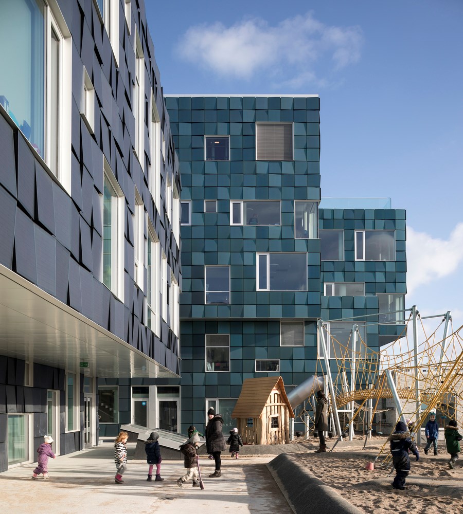 Een schoolvoorbeeld is de Copenhagen International School, waarvan de gevel volledig is bekleed met meer dan 12.000 gekleurde zonnepanelen. Deze panelen leveren niet alleen stroom, maar trotseren ook moeiteloos het ruige zeeklimaat, en zijn vrijwel onderhoudsvrij.