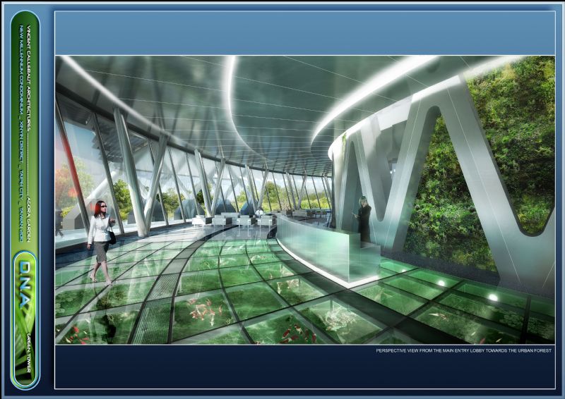 De architect en opdrachtgever zijn echter niet van plan om een simpel ontwerp op de wereld los te laten. Neen, het gebouw is gevormd naar het DNA van de mens. De toren is om zijn as gewikkeld, in twee verschillende richtingen.