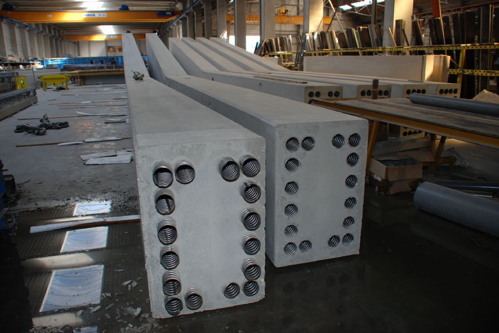 BETON: BETCA produceert ook voorgespannen elementen. Is die techniek hier toegepast, voor de kolommen bijvoorbeeld?
