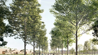 Het ontwerpteam vertrok vanuit de aanwezige structuur van de kazerne: de orthogonale inplanting, de langgerekte zichtassen, de open ruimtes en het ensemblekarakter van de bestaande gebouwen. Deze erfgoedwaarden worden niet enkel behouden, maar ook geactiveerd. Zo blijft de centrale dreef behouden als ruggengraat van het plan – een groene as die de wijk verbindt met het dorpscentrum en het achterliggende bos. De gebouwen en infrastructuur vertellen het verhaal van een andere tijd, maar lenen zich tot adaptief hergebruik.
