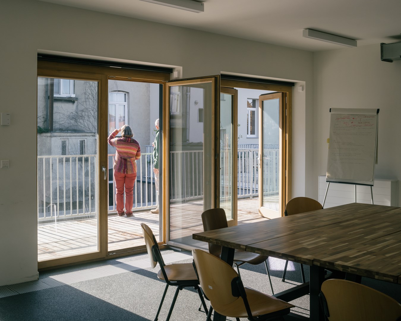 Een bijzonder aspect van het ontwerp is de ‘activity-based’ aanpak, waarbij verschillende werkactiviteiten zoals vergaderen, focuswerk, informele ontmoetingen en zelfs muurklimmen ruimtelijk werden geclusterd. Door ruimtes te delen met andere organisaties, stimuleert het gebouw niet alleen efficiënt ruimtegebruik maar ook sociale interactie en gemeenschapsvorming. Gedeelde faciliteiten, akoestische ingrepen en flexibele zones zorgen ervoor dat uiteenlopende activiteiten gelijktijdig kunnen plaatsvinden zonder elkaar te hinderen.