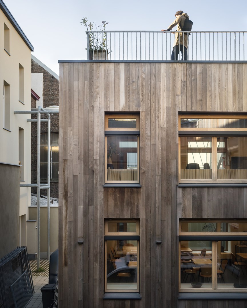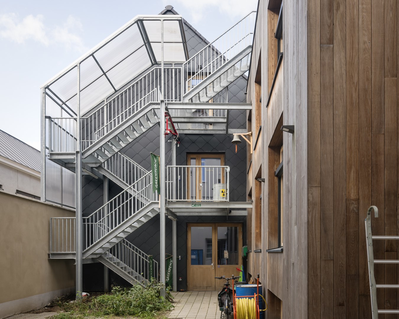 In het hart van Brussel, verscholen in een dichtbebouwd bouwblok, heeft Greenpeace België een nieuw onderkomen gevonden. Architectenbureau archipelago transformeerde een voormalig orgelatelier tot een duurzame, flexibele werkplek. Het project combineert een innovatieve herbestemming met een minimale milieu-impact en creëert een dynamische omgeving voor de activistische organisatie. De renovatie vertrekt vanuit het principe van ‘sufficiëntie’, waarbij enkel wordt toegevoegd wat strikt noodzakelijk is. Bovendien zijn de ruimtes niet klassiek ingedeeld, maar afgestemd op de uiteenlopende activiteiten van Greenpeace, van vergaderen en focuswerk tot zelfs… muurklimmen.
