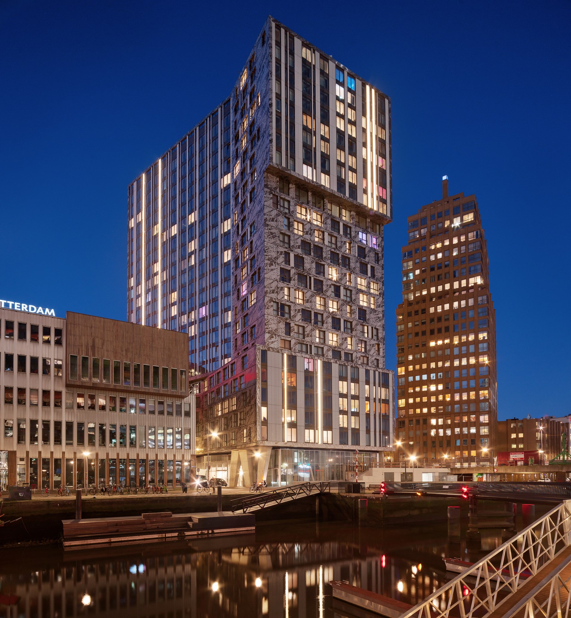 Dit project heeft te maken met een leegte, een locatie die onbedekt is gebleven sinds het bombardement op Rotterdam in 1940 en een dilemma waarvan slechts weinigen geloofden dat het kon worden opgelost. Hoewel de rest van de stad al lang weer was opgebouwd, was dit driehoekige stuk stedelijk braakland als een gapende wond of een onooglijk gat in een rij tanden. De ruimte, gelegen op een markant punt aan de Wijnhaven naast de Hogeschool Rotterdam, was te klein en te onhandig van vorm om investeerders te interesseren. Tangram Architecten heeft nu een hoogbouw gerealiseerd die niet alleen onderdak biedt aan studenten, maar in combinatie met de torenflat aan de overzijde van de weg ook een poort naar de stad vormt.