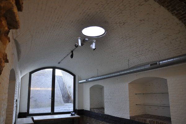 De restauratie was niet vanzelfsprekend. Licht krijgen in een fort omringd door een dak van 1,9 meter dik; dat brengt de nodige problemen met zich mee. Zo moet er bijvoorbeeld een afstand overbrugd worden van het dak tot het plafond.