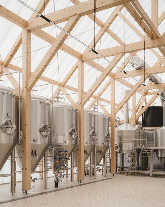 Het ontwerp van Delmulle Delmulle Architecten respecteert de historische identiteit van de site en integreert harmonieus een hedendaagse constructie: een nieuwe loods die wordt gebruikt als microbrouwerij. Deze loods, gebouwd met duurzame en demonteerbare materialen zoals een FSC-gelabeld houten skelet en geïsoleerde polycarbonaatpanelen, voegt een modern, technologisch geavanceerd element toe aan het traditionele ensemble.