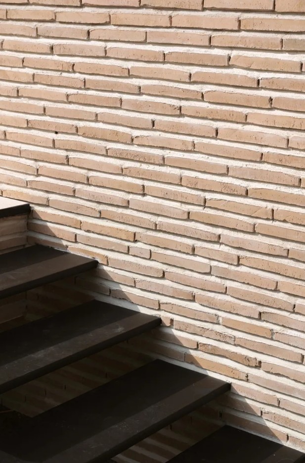Aan de gevelsteen zelf werden ook hoge eisen gesteld. De architect zocht een zandkleurige baksteen die opgaat in de omgeving en tegelijk warm en levendig oogt. Dankzij het handgevormde procedé voldoet de linea 1017 perfect aan die verwachtingen. Zijn artisanale karakter levert een grote variatie tussen de verschillende bakstenen, zelfs binnen 1 pallet. Om de gewenste uitstraling te bewaken, gebeurde de selectie van de bakstenen tijdens het bouwen uiterst zorgvuldig.