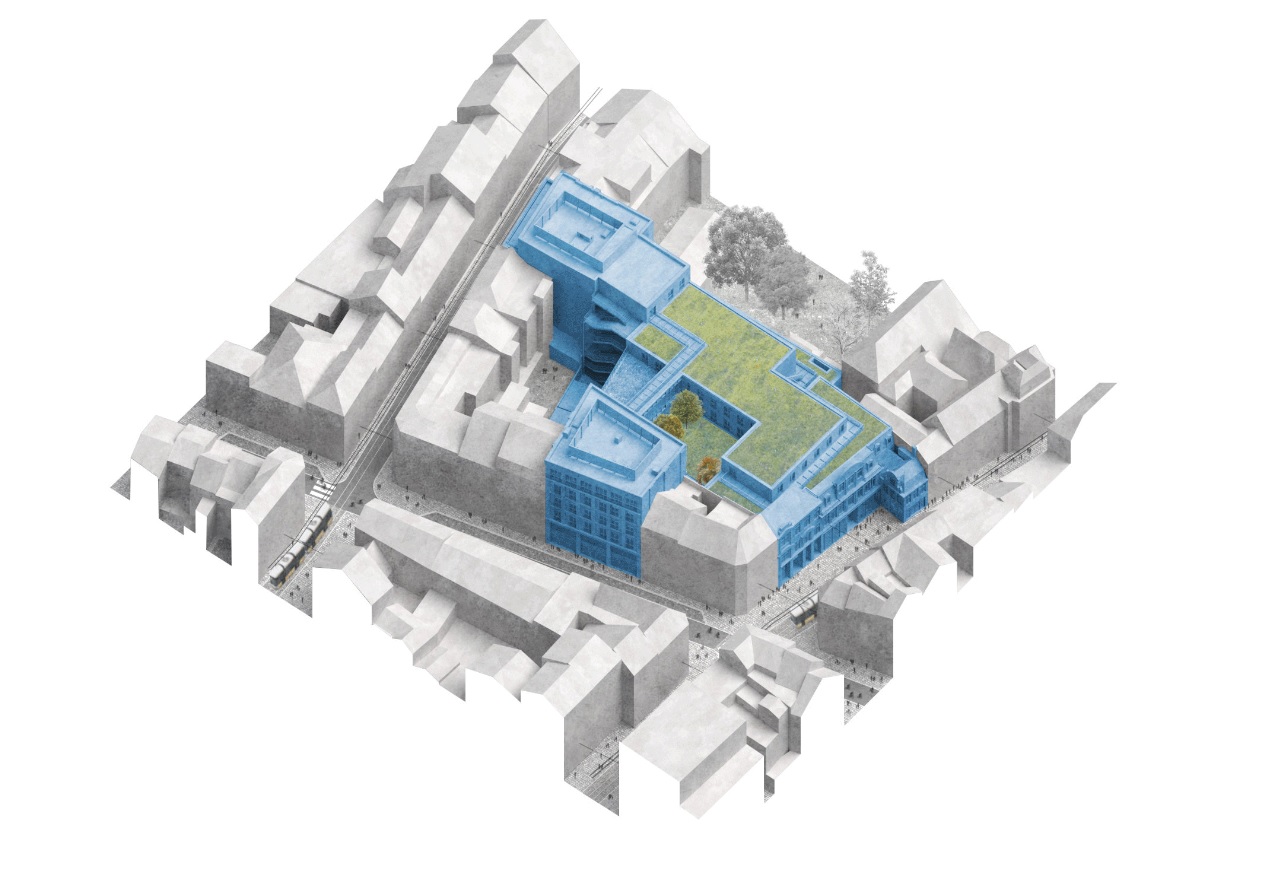 Maar Abscis Architecten slaagde er met verve in een door alle partners gedragen ontwerp af te leveren. Een ontwerp dat bovendien ook nog eens hoog scoort op het vlak van circulair bouwen. En niet alleen omdat het om een herbestemmingsproject gaat en de bestaande betonskeletstructuur en de beschermde historische gevels behouden en gerenoveerd werden.
